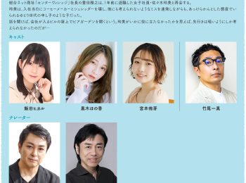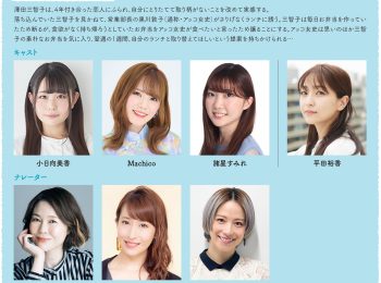 本企画は原作の魅力である「会社員として活躍する普通の若い女性たち」を若手人気声優をメインキャストに起用し、ベテラン声優で脇を固めた豪華声優陣による朗読劇です。役者の息遣いが聞こえるような至近距離で、迫力ある声優の演技をお楽しみ頂けます。